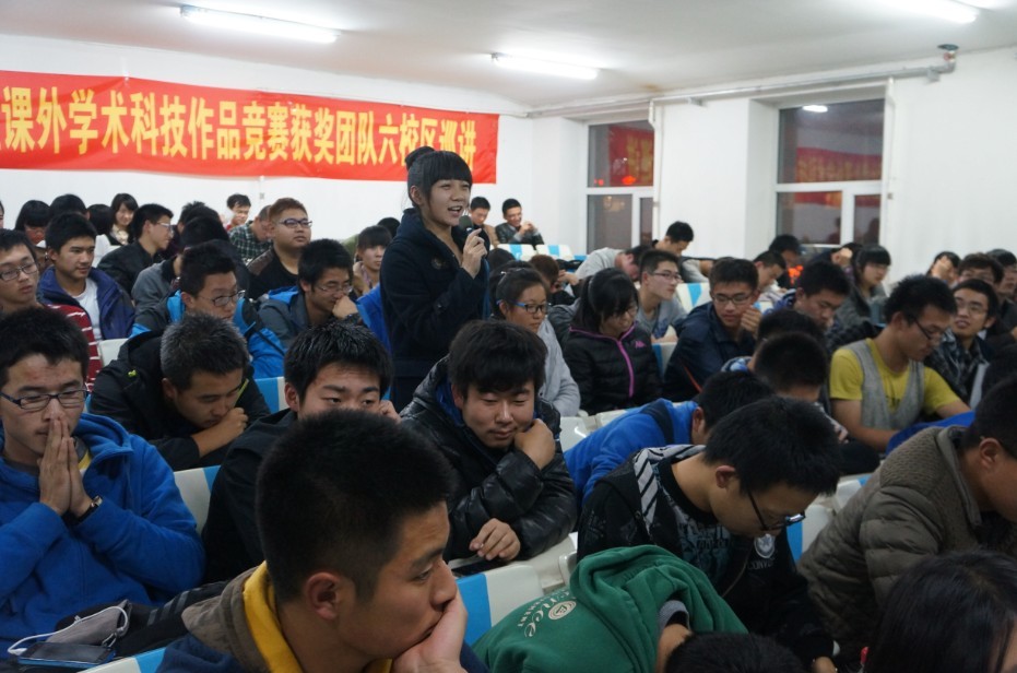 在巡讲活动开始前,主持人隆重介绍了“挑战杯”获奖团队成员及我校在本次大赛的获奖情况——时隔十年,以总分340分、总成绩排名第6名的优异成绩重新捧回“优胜杯”。 之后进行的作品展示环节中,五位优秀获奖者分别介绍了自己的参赛作品,有利用高端纳米技术制造的高效电池,有锐意创新的社会管理新模式,有防止交通事故发生的智能后防护装置,还有巧妙设想的纳米修复材料……同学们虚心聆听,认真学习。随后,大家共同观看了此次“挑战杯”大赛的宣传总结视频片,精彩的视频让大家体会到了科技创新的魅力所在。接下来进入到了互动交流环节,同学们积极发言,将自己心中的以后向获奖同学提出,获奖同学以专业的术语、幽默的表达为现场同学答疑解惑,让各位同学受益匪浅。最后,欧美无码