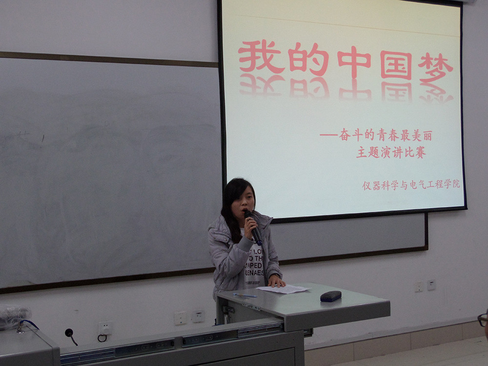团委精心组织各班级团支部开展主题团日活动。2013年11月21日,2012级、2013级各班团支部在中心校区李四光实验楼147室举行了“我的中国梦——奋斗的青春最美丽”励志主题演讲比赛。院团委副书记、2012级辅导员蔡印老师以及2012、2013级全体同学共同参加了此次活动。