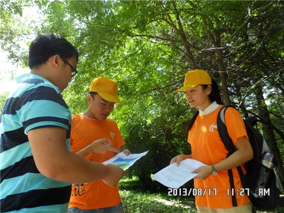 2011级四班徐维、彭醒醒、张楠等同学组成的社会实践团走进长春市南湖公园开展了“青春中国梦 环保树新风”主题志愿服务活动。