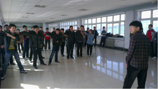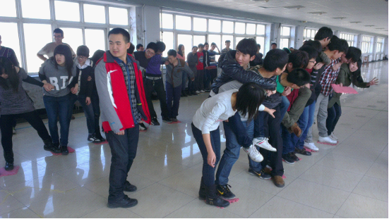 活动开始前,由裴利然部长讲话,明确了此次活动的目的,了解素拓的意义——通过一系列活动说明大家的团队价值及合作双赢的重要性。活动开始,同学们在主持人的引导下随机排成四组队伍,并依次进行风采展示。接下来进行游戏部分,一共分为四个环节,首先进行的游戏是“你演我猜”。每个队伍把想好的词语通过肢体表演出来,并由对手来猜出正确答案。小组成员之间激烈探讨,努力想要难倒对手。这充分展示了同学们独特的创意,并且展现了各自的表演天赋。接着进行下一个游戏“诺亚方舟”。每组的十二个成员利用六块踏板来转移到“河”的对岸。每组同学之间你争我赶,组内成员相互扶持,力争不落下任何一人最快到达对岸。第三个游戏是“过河拆桥”,要求同学们站在踏板上,需要踏板最少的一组获胜。每组十二个队员紧紧团抱以稳定重心,队长小心翼翼逐一抽出同学们脚下的踏板。最终第三队同学们以踩住四块踏板坚持了两分钟的最高成绩获得了第一名。为保证每一个人都踩在踏板上,大家相互扶持,累的满头是汗却依然坚持不松懈,把整场气氛推向了高潮。最后一个游戏是“军火运送”。每组的成员们站成一排,用各自的一只手臂托起木杆,并运送到另一头。经过快速的磨合,大家有了默契,作为“军火”的轻质木杆就像有了生命一样,井然有序地被运送到队伍的另一头。这充分考验了同学之间的配合,团队协作能力,并为同学们创造了一个良好的交流机会。