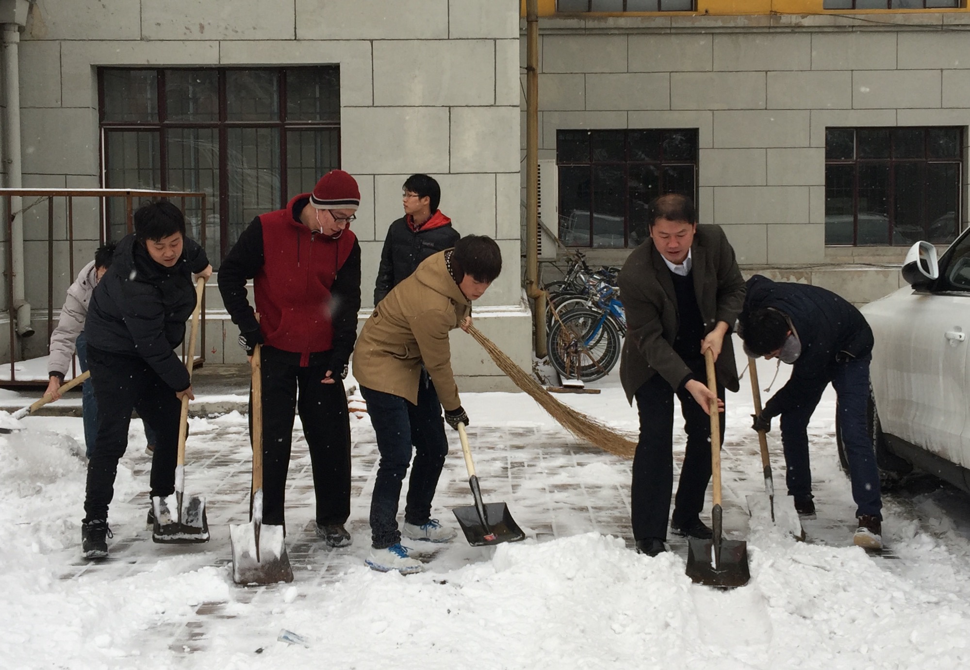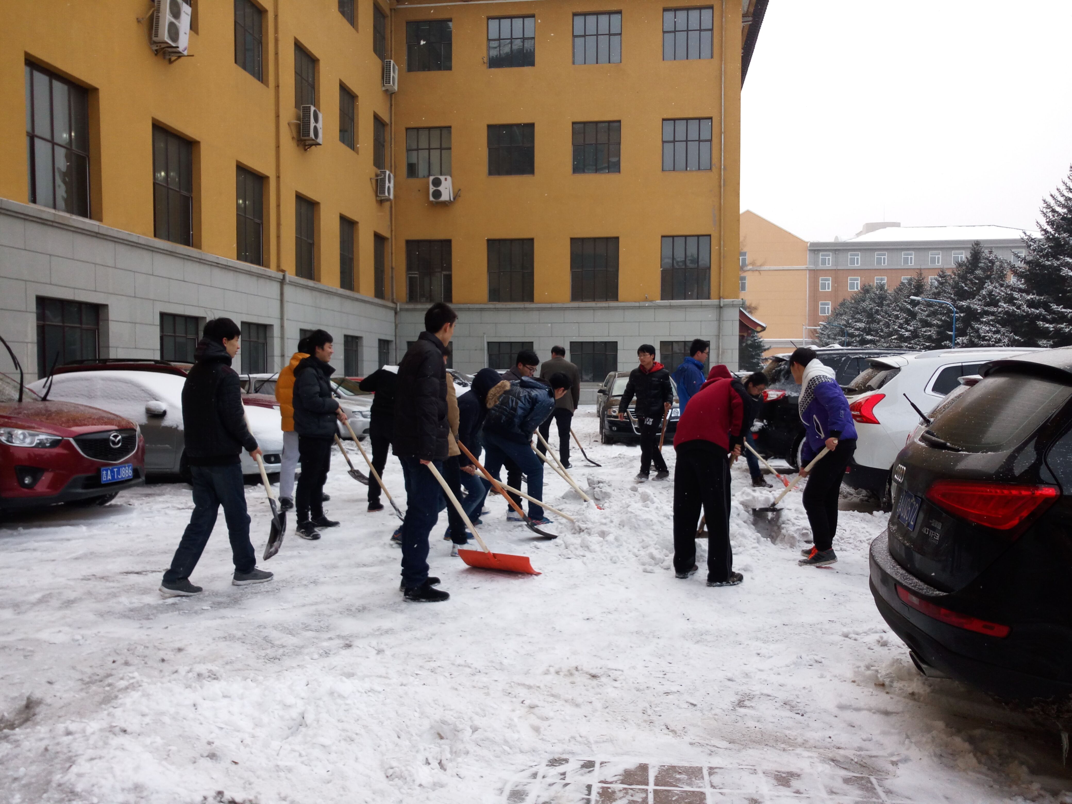 青年大学生在党委副书兼副院长记邱增凯老师的带领下在吉林大学朝阳校区开展义务清雪活动。