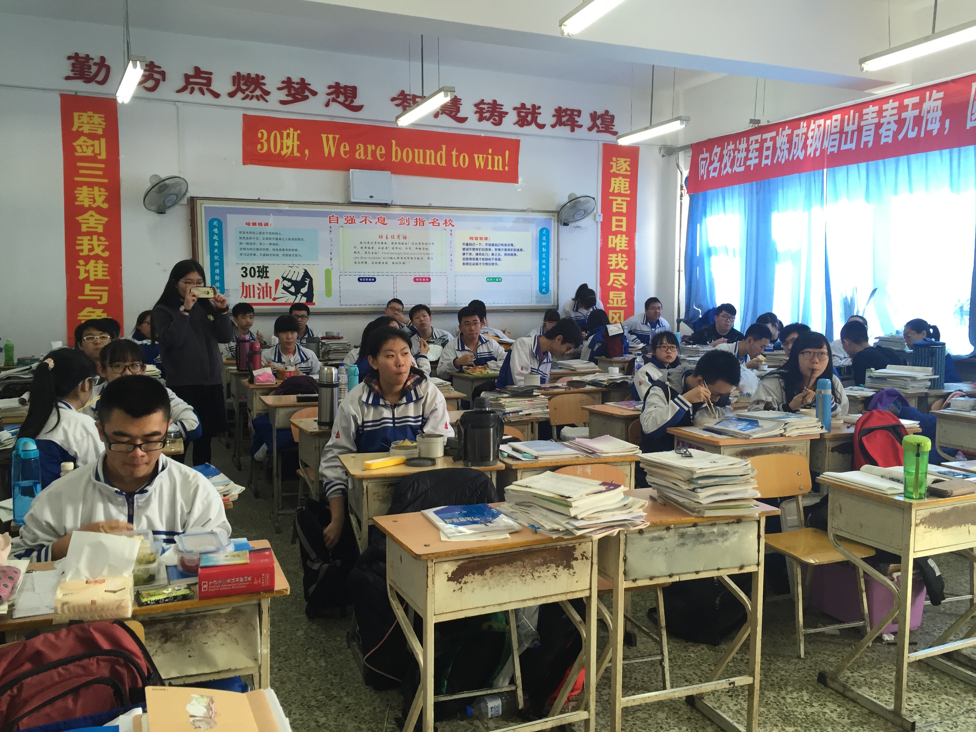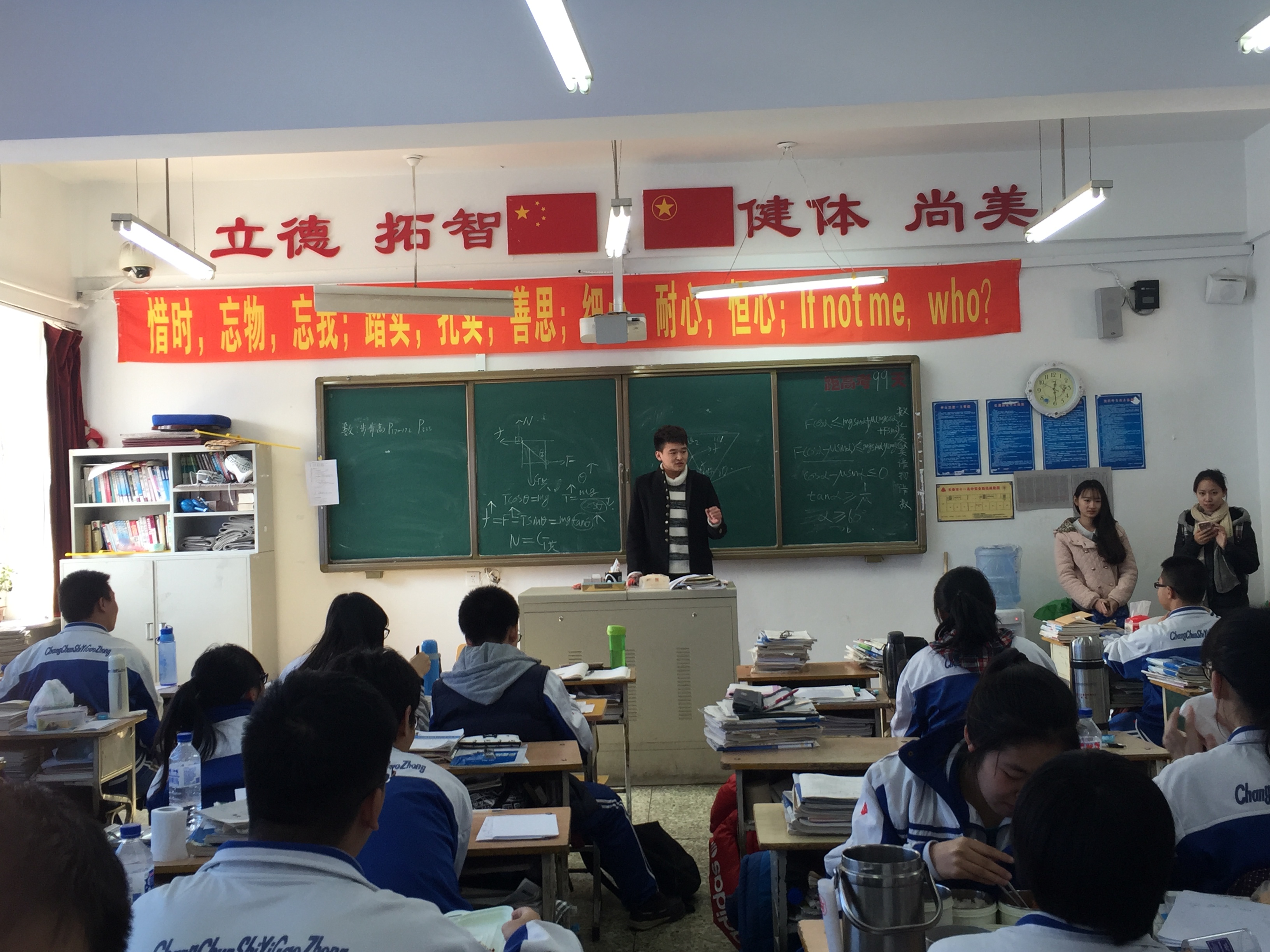 吉大学子首先与师生们进行了一些学习生活上的交流,帮助同学们解决了一些生活上的疑难问题和学习上的困惑,赢得了学子们的积极响应。随后,吉大学子们把“勤劳点燃梦想,智慧铸就辉煌”的海报张贴在29班、30班的门口,这积极向上、青春励志的语录时刻提醒同学高考在即,要抓紧人生的一分一秒,为美好的明天而奋斗。随后,吉大学子本着“吉光片羽,采撷北国之美,大匠运斤,可就逸群之才”的目的宣传了学校历史,讲述了精彩纷呈的校园生活,点燃了十一高学子们对吉林大学的憧憬和向往。