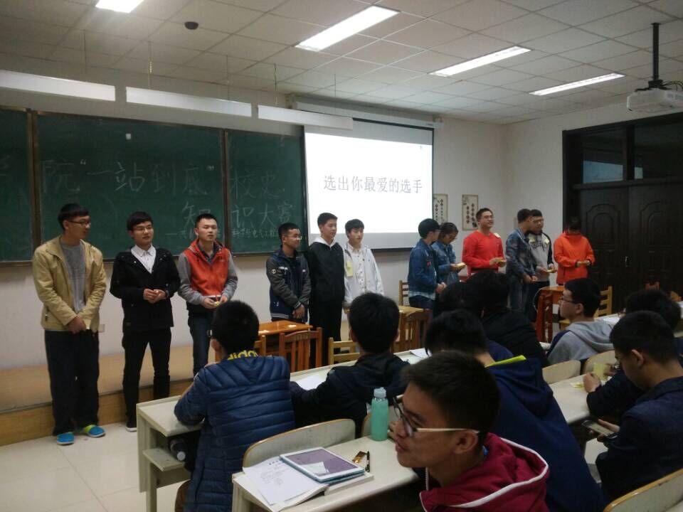 团委组织开展“我为校庆献礼”系列活动。2016年4月27日,一站到底“知校史,明校情”知识竞赛决赛在中心校区李四光楼304室举行,学院团委书记兼2015级辅导员张昊宇老师、全体学生会成员和2015级同学参加了本次活动。