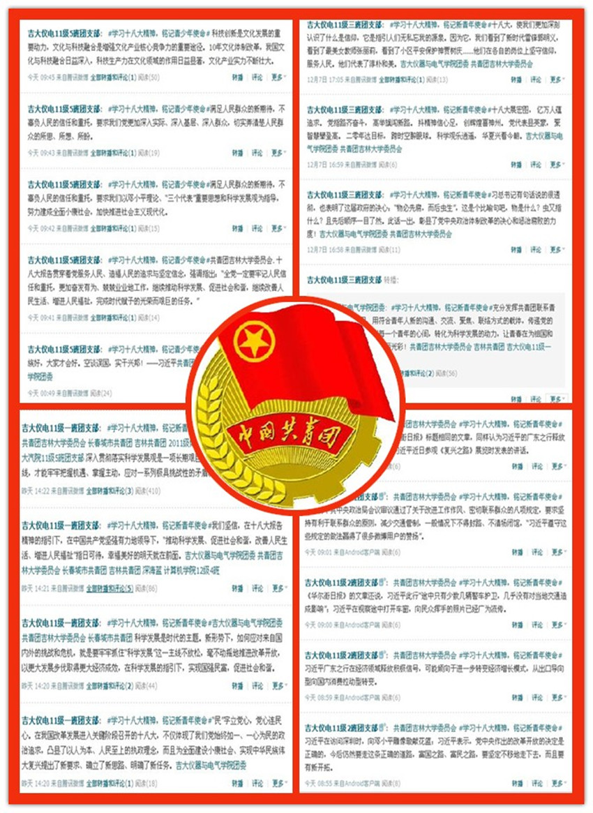 自2012年11月19日开始,学院团委组织各班级团支部以“学习十八大精神,铭记新青年使命”为主题开展微博学议十八大活动。此后的二十余天时间里,学院各班级团支部坚持“突出主题,注重创新,结合专业”的原则,积极结合专业知识,从专业角度对十八大进行学习和讨论,充分体现学院和专业特点。截止到2012年12月10日,学院全体团支部累计发布相关主题微博近3000条,被阅读次数累计超过5万余次,被转播超过400次,营造了学习宣传贯彻党的十八大精神的浓厚良好氛围,与学校其它兄弟院系共同掀起了吉林大学千班万团微博学议十八大活动的热潮。