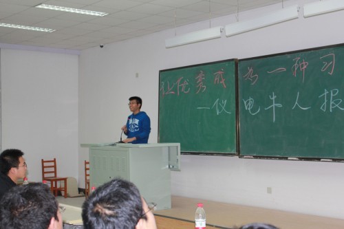会上,林展汐同学首先讲述了自己的事迹。他以一种庄重、磅礴的气势和大家分享了他的一些学习经验,他把“人生比作100步,99步是一半,最后一步也是一半”,来告诫我们:学习不仅重在开始,还要善于结尾,恒心和毅力才是关键。之后,王春泽同学以一种亲切近人的方式上场,他从自身四年的一些经历给大家提出学习建议,并鼓励大家大胆参加数学建模、电子大赛、科研实验、大学生创业实验项目等活动,同时还详细分析了学习与工作的利与弊。最后,吉林大学2011年度“十佳大学生”、学院第六届学生会主席、欧美无码