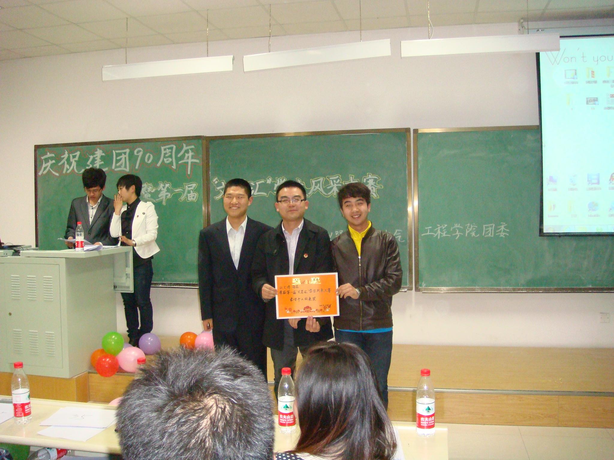本次比赛共分3个环节,首先是“党团在我心,短片秀风采”环节,选手们以DV、PPT等多种形式表达了对中国共青团90周岁生日的美好祝福,并展现当代青年大学生的良好风采。第二个环节是“我爱记励志歌词”,参赛选手通过接唱励志歌曲展示了各自的才艺和风采。在随后的“配出我风采”环节中,同学们通过为经典革命电影配音的方式彰显自我、团结协作,为大家带来了许多的快乐。整个活动过程同学们热情高涨、欢声不断,很好地体现了“90后”青年大学生的青春风采。活动最后,院团委副书记兼2011级辅导员朱宇对活动进行了总结点评并为获奖选手颁奖留念。
