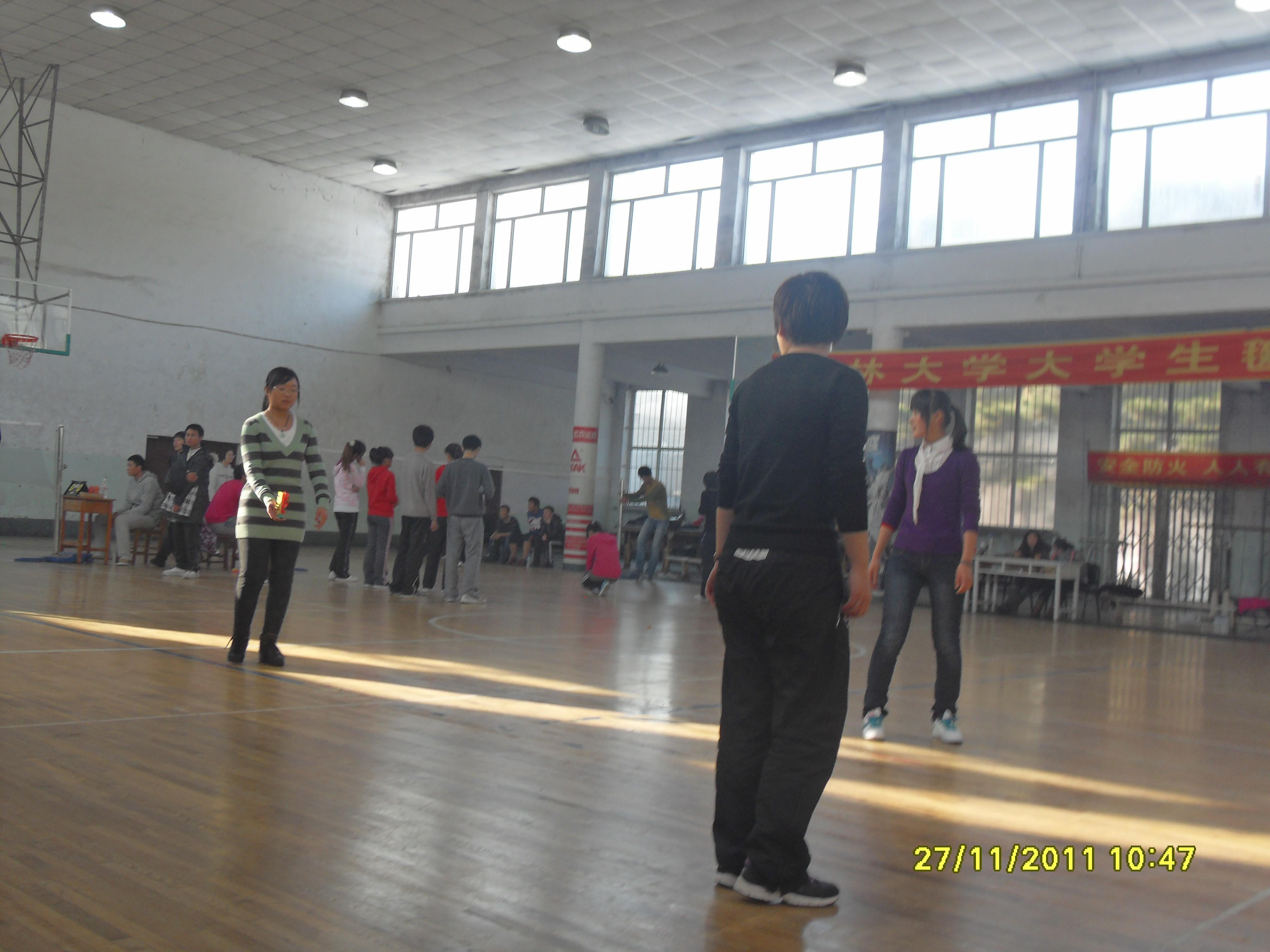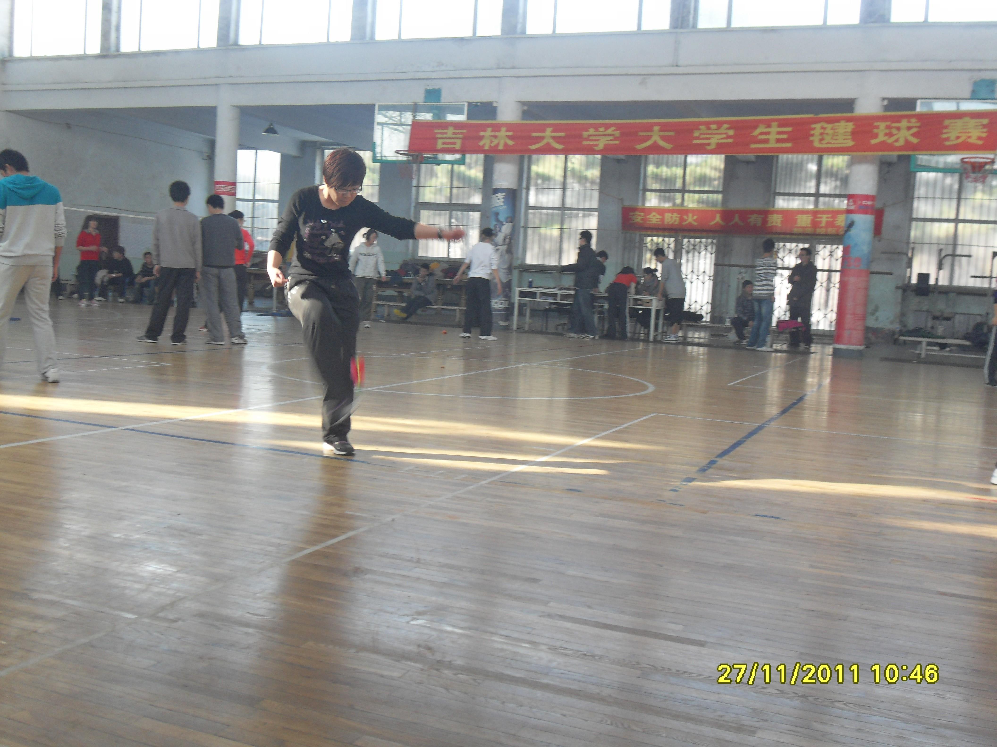 2011年吉林大学第十一届学生毽球公开赛于2011年11月26至27日在朝阳校区体育馆举行,本次比赛,欧美无码 选派2011级李秋怡、吕艳妮、张焕焕、刘梦婉、韩哲鑫、郑晖、王桥、吴天峰等八名同学参赛,在男子单人赛和女子单人赛中,吴天峰、吕艳妮分别以小组第一晋级下一轮,并最终进入16强;在女子三人赛中李秋怡、吕艳妮、张焕焕以小组第二晋级并最终取得第三名,韩哲鑫、郑晖、王桥在男子三人赛中取得第六名的好成绩。