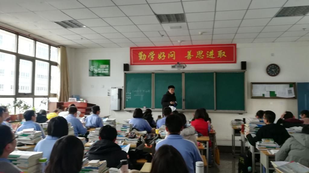 首先,宣讲队成员向同学们下发了宣传资料和精美的书签,从同学们浏览资料的眼神中,看到了他们对大学生活的向往,及对高考必胜的决心。随后,播放了《大美吉大》纪录片,同学们被吉林大学的优势地位以及校园悦人的美景所吸引。之后,宣讲队成员将准备好的校区简介以及学科优势等内容以诙谐幽默的方式向同学们表达,在快乐的氛围中让同学们感受到吉林大学对他们的欢迎和期待。最后,在提问环节,同学们热情、积极地提出自己的疑惑,宣讲队成员耐心、准确地为他们解答。这进一步拉进了与同学们之间的距离。在这距离高考100天之际,此次宣讲活动,为同学们的紧张的高考复习生活增添了几分色彩,增大了同学们对吉林大学的向往。