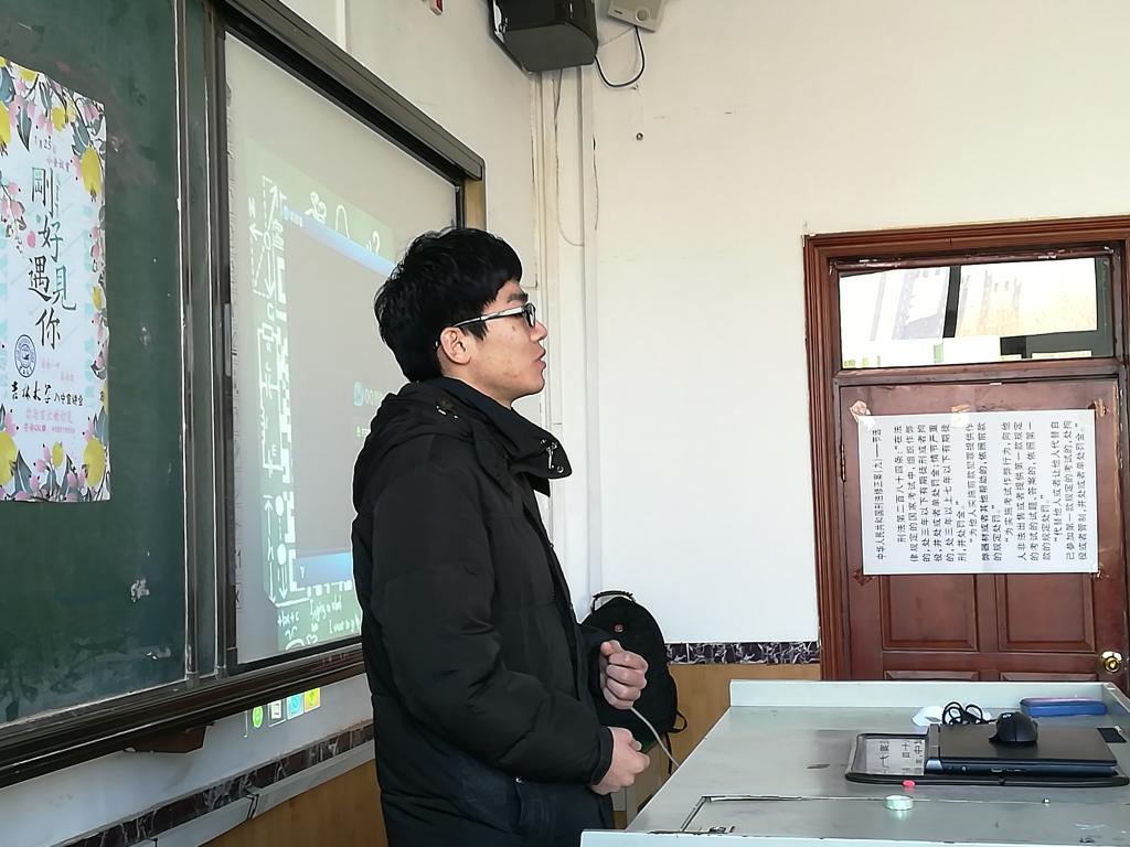 的吴坤洋同学详细地介绍了仪电学院的科研成果、师资力量以及今年的招生动态。他们富有激情的宣传介绍,让宣讲现场的学弟学妹们对吉林大学有了初步的了解,也让他们对于报考吉林大学有了更大的热情。