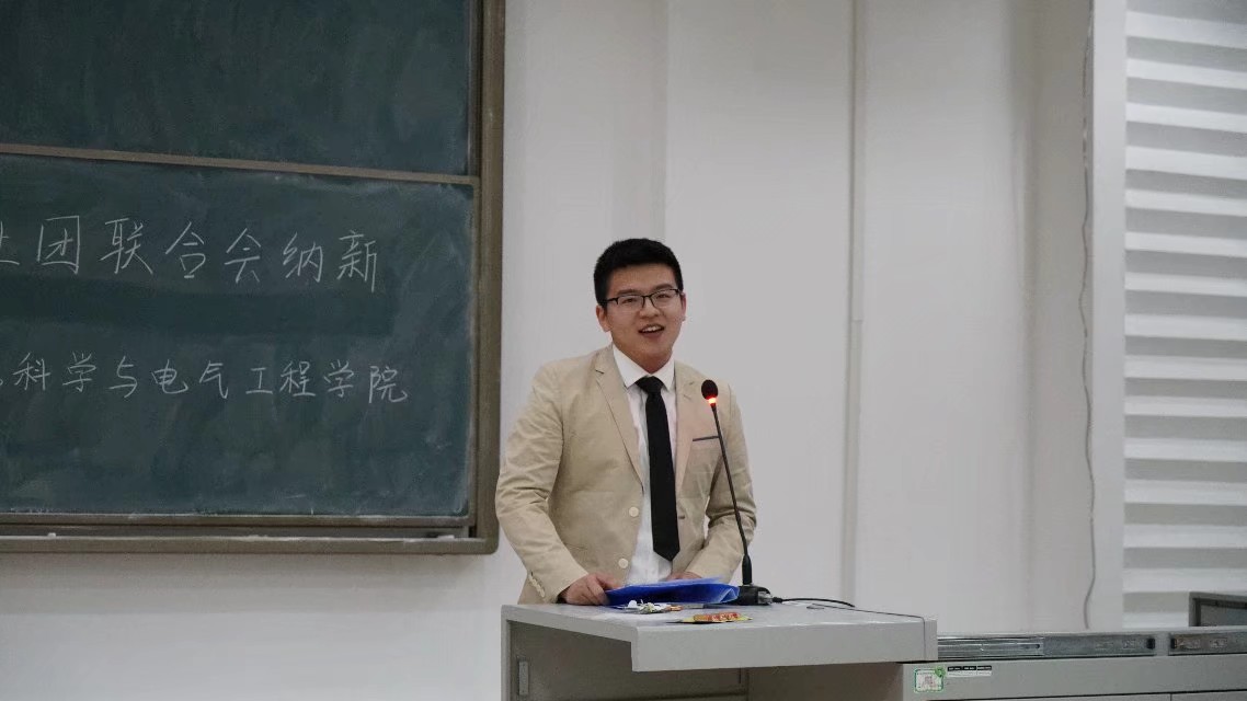 慷慨激昂的团歌拉开了本届纳新大会的帷幕,首先由分团委副书记仲点石作出学生组织工作报告,向大家汇报了第十三届团学社组织半年以来的成果;而后,学生会主席马松辰向大家介绍了组织的结构,为接下来各部门的精彩介绍做了铺垫;最后,院社团联合会主席王华梁作出了组织的未来展望,为大家描绘了一副精彩的蓝图,振奋人心。接下来各部门部长以图片、视频等多种多样的形式向2017级同学介绍了部门职责及新一年的工作计划。新闻媒体社的积极向上,宣传实践部的踏实努力,组织培训部的井井有条,秘书部的缜密严谨,生管部的优异成绩,文体部的舞台魅力,心理部的文采横溢, 科协的累累硕果,生声论坛的能言善辩,牵手志愿者协会的爱心满满,无不让2017级同学报以热烈的掌声。