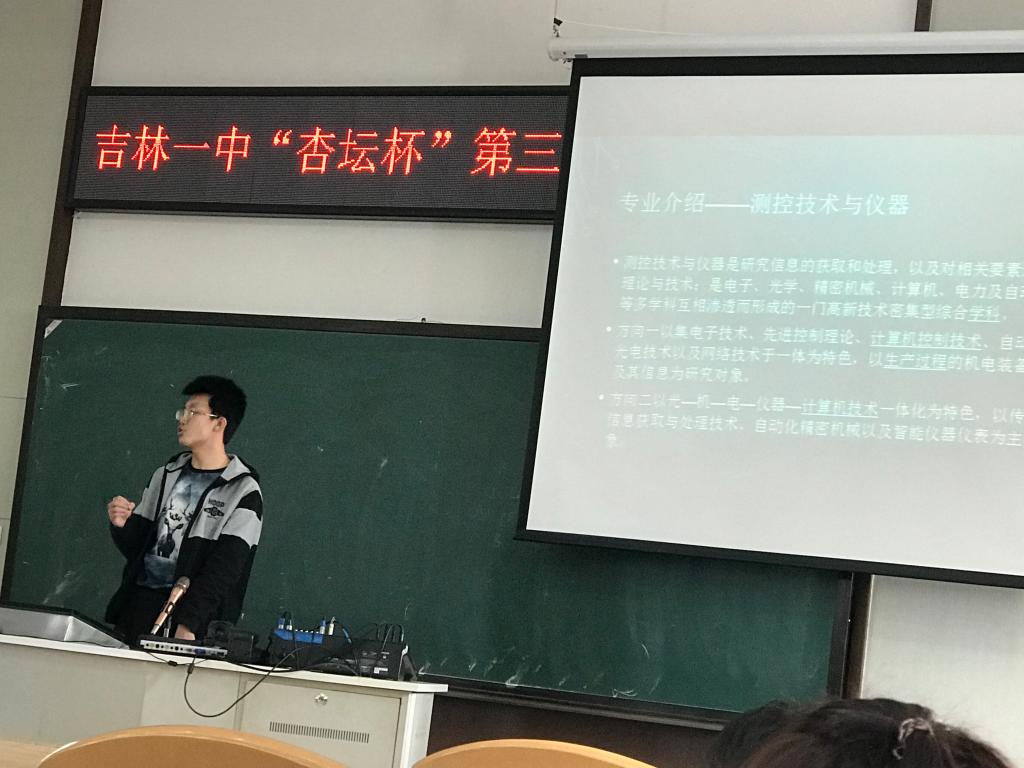为了弘扬十九大精神,同时向即将参加高考的同学们宣传吉林大学、宣传仪电学院,2018年2月4日星期日,吉林大学仪电学院的李福浩等同学来到吉林市第一中学进行主题为“不忘初心,继续前进”的宣讲活动。
