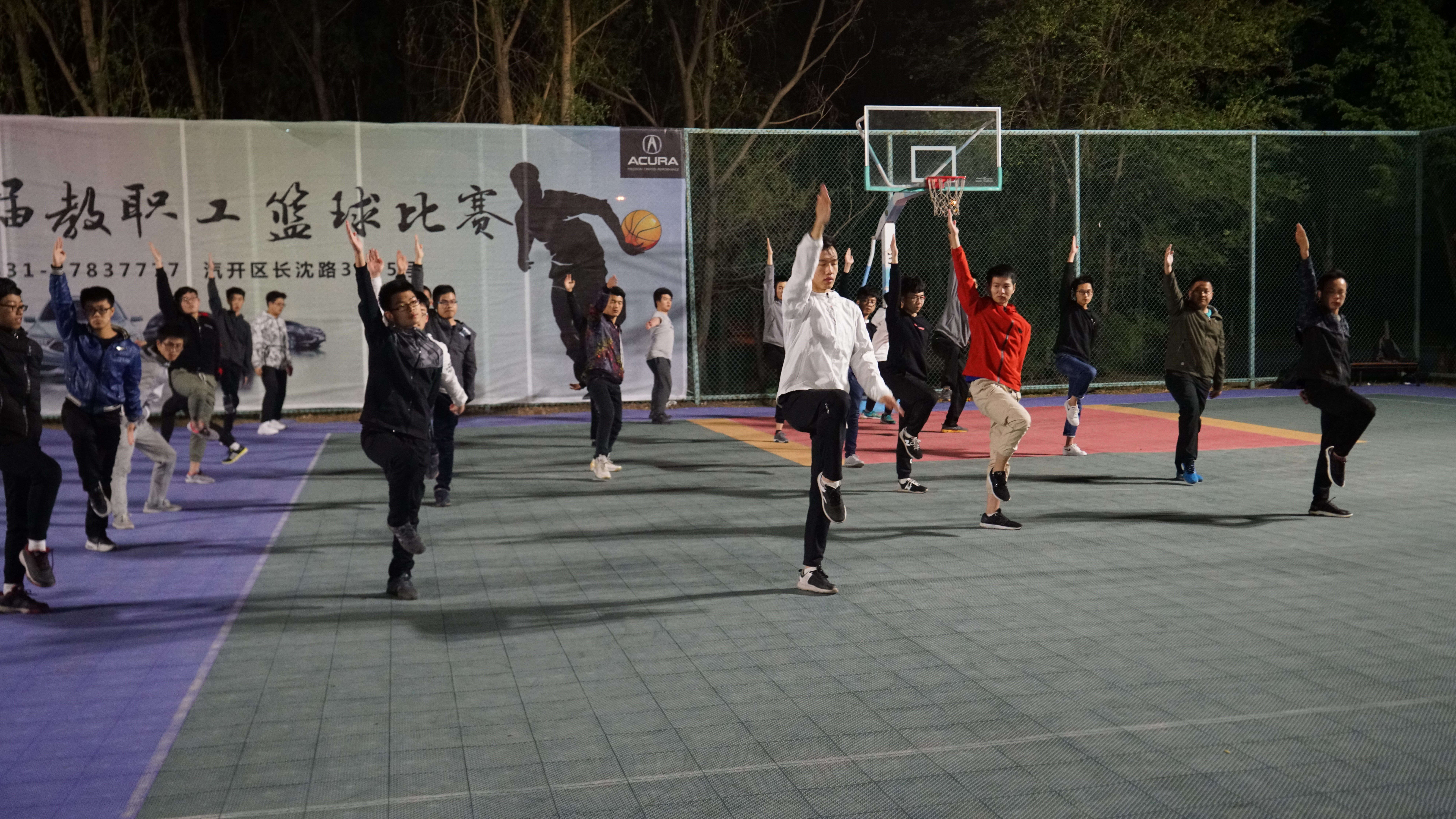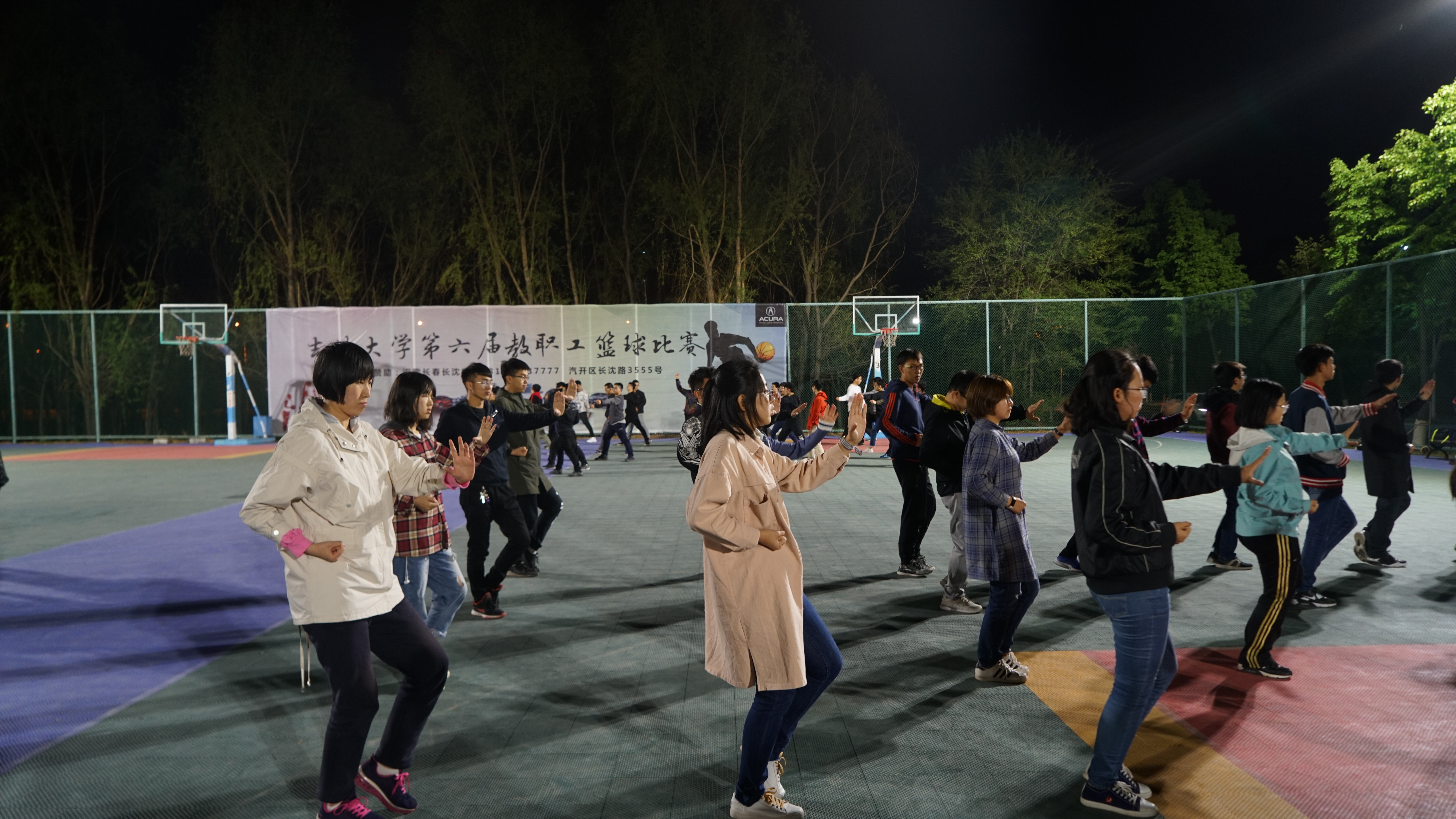 于2018年5月6日晚9:00在中心校区篮球场展开长拳、太极拳、广播体操及啦啦操的训练工作。