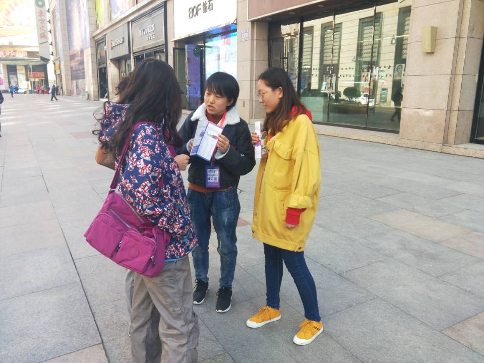 10月20日上午8:00点志愿者们全员出发前往募捐地点。经过一番准备后,劝募活动于上午8:40正式开始。起初募捐活动并不顺利,路人大多行色匆匆,只有寥寥几人愿意听完志愿者们的讲解,但是志愿者们并没有气馁,而是更加努力的进行宣传。功夫不负有心人,慢慢地,开始有人主动向志愿者们询问该活动。在听完志愿者的详细讲解,并解答了相关疑问后,很多人都表示愿意献出一份爱心。此后,志愿者们更坚定了信心,活动持续到上午11:30。在整个过程中,从学习如何劝募,到解决实际劝募中遇到的种种问题,志愿者们在传递爱心的同时,也得到了充分的锻炼。