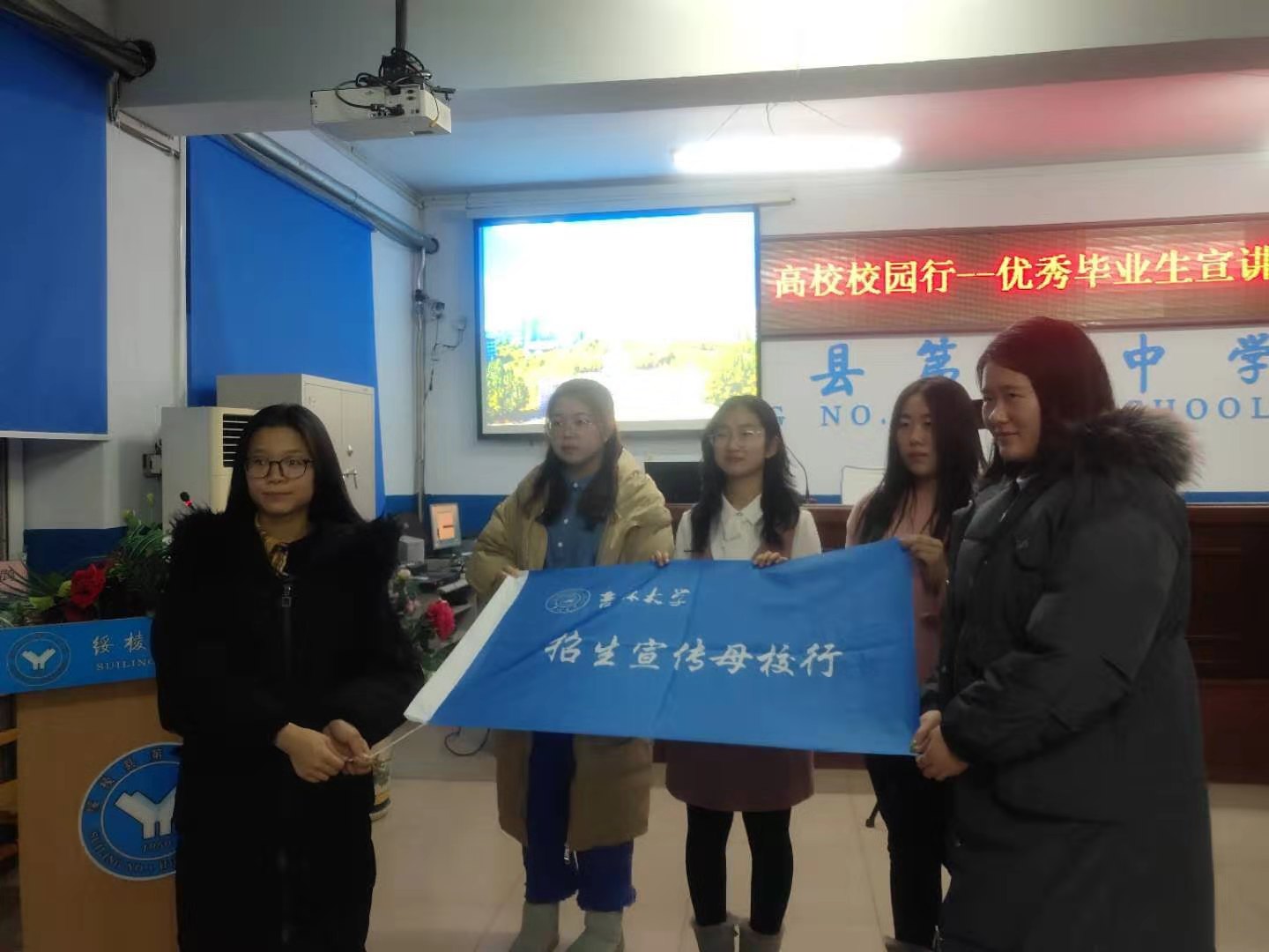 宣讲团队首先介绍了吉林大学辉煌的历史并向同学们下发了宣传资料和精美的书签,从同学们浏览资料的眼神中,看到了他们对大学生活的向往,及对高考必胜的决心。随后,播放了《大美吉大》纪录片,同学们被吉林大学的优势地位以及校园悦人的美景所吸引。之后,宣讲队成员将准备好的校区简介以及学科优势等内容以诙谐幽默的方式向同学们表达,在快乐的氛围中让同学们感受到吉林大学对他们的欢迎和期待。接着,宣讲团队介绍了欧美无码