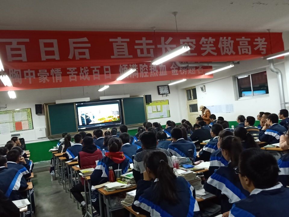 学子为同学们播放了《大美吉大》的宣传片,在动感音乐的感染下,每个人都在认真的观看,大家纷纷被视频中的景象所吸引,一瞬间,教室内响起了雷鸣般的掌声。接下来是问答环节,教室里一片欢声笑语,学长学姐们亲切的为大家解答他们提出的问题。最后,在宣讲团成员对于高三学子们报以真挚的祝福后,本次宁夏之行的宣讲活动圆满结束。