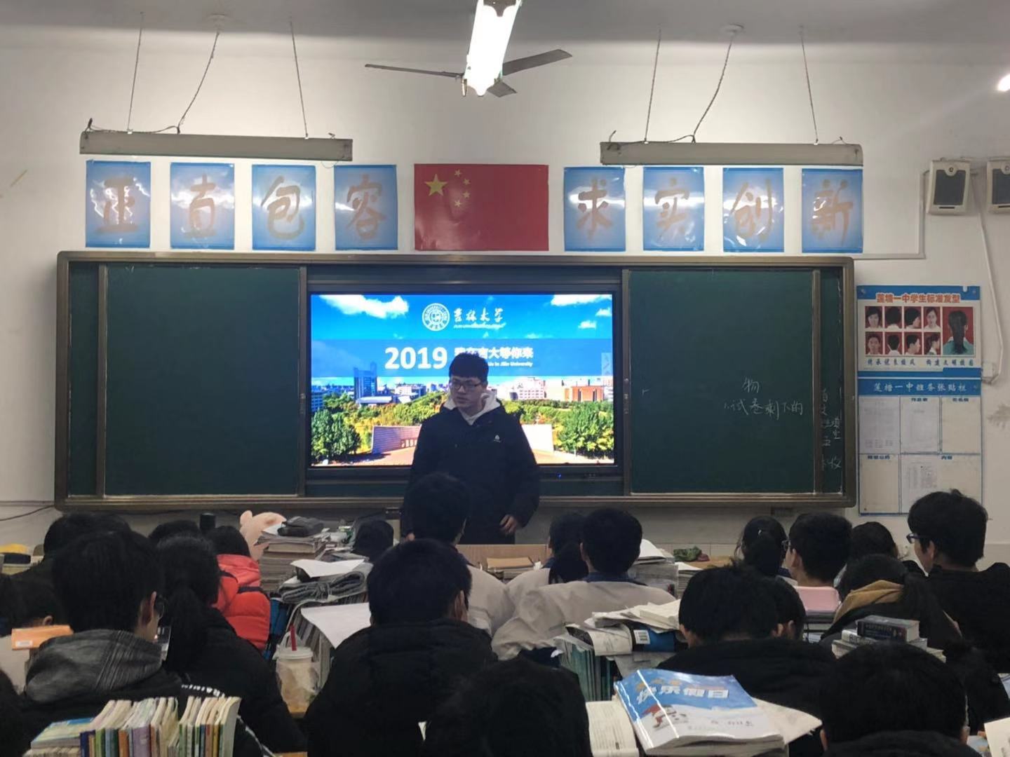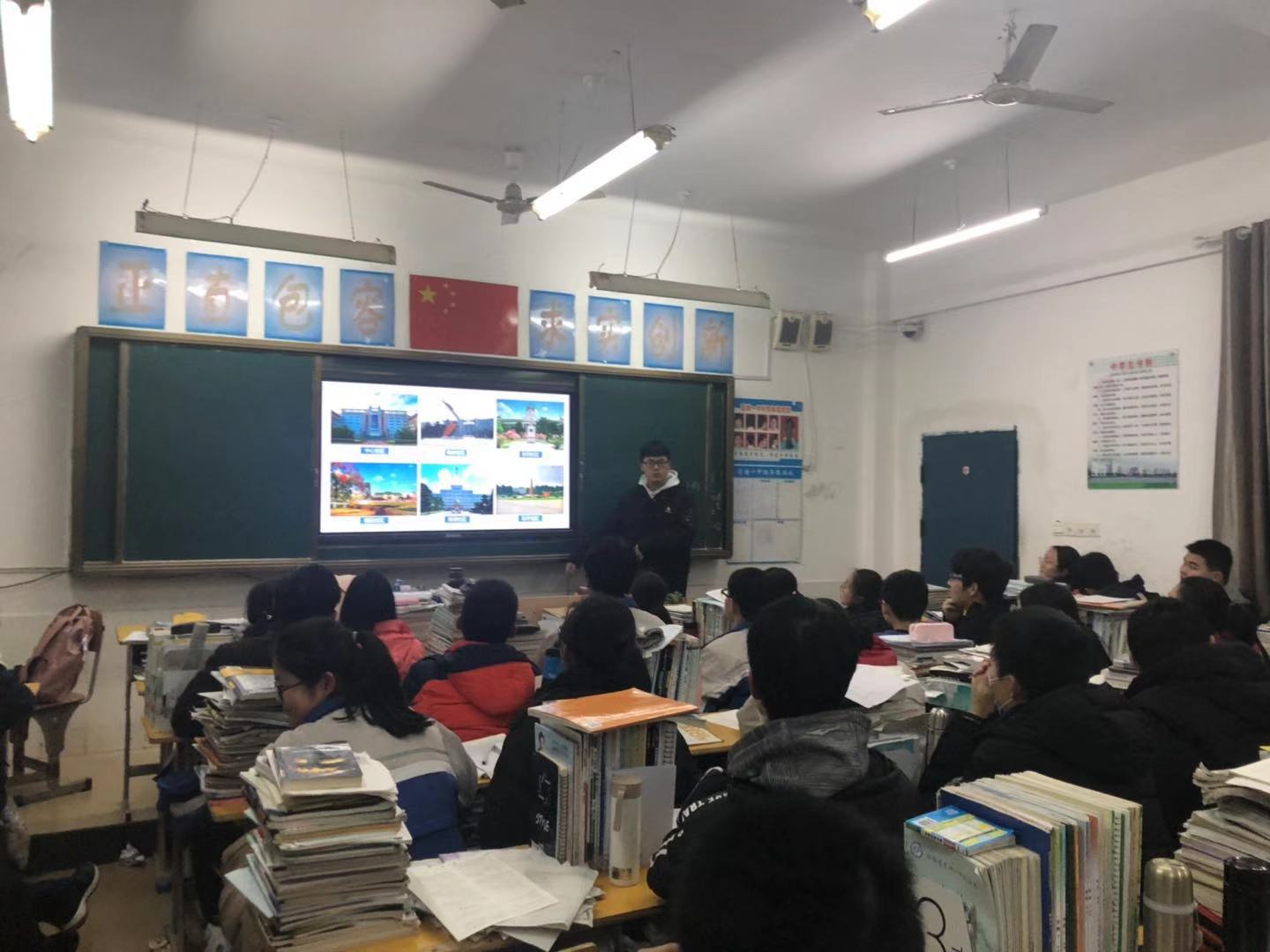 2019年1月21日下午7:00,在征得莲塘第一中学同意的情况下“情系母校莲一行”团队依次进入班级进行宣讲活动。每进入一个班级,学弟学妹们都报以热烈的掌声。团队成员首先向学弟学妹们介绍了自己的身份并表明来意,随后播放了吉林大学的宣传视频《梦舞吉大》,通过视频学弟学妹们感受到了吉大学生日常生活的的多姿多彩。然后,卞思宇从学校综合实力、建校历史、校区分布、著名院士、吉大校园和社团活动等方面分别进行详细介绍。最后在答疑时间,团队成员针对学弟学妹们提出的各种有关问题耐心解答,并分发了吉林大学报考宣传册以及印有吉林大学公众号二维码的书签,以便学弟学妹们进一步了解吉林大学。