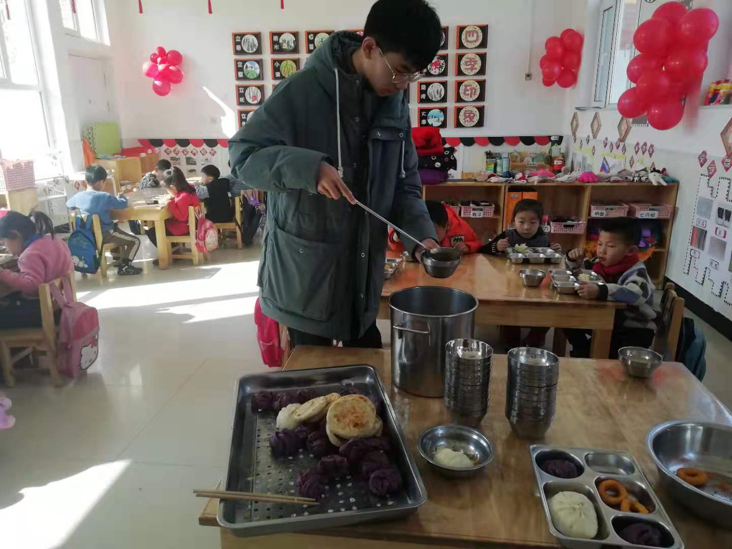 为积极响应我校开展志愿服务走基层活动的号召,讲吉大故事,扬吉大精神,展吉人风采,切实满足基层真正需求,寒假期间刘熠同学于2019年2月21日至2019年2月24日在唐山市玉田县亮甲店镇第四幼儿园开展志愿服务活动。