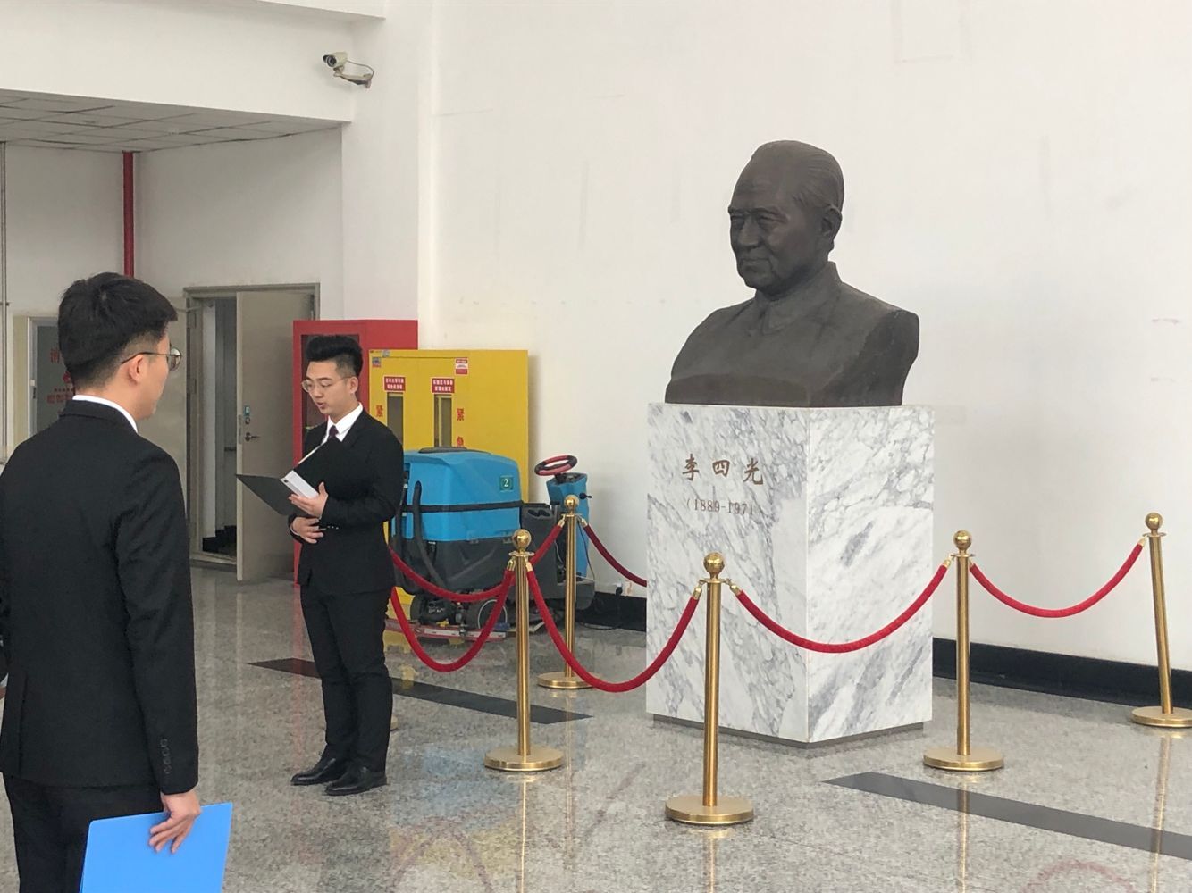 上午9时,学生代表们身着正装在李四光实验楼前集合。大家一同来到李四光雕像前,学生代表首祁鑫先追忆李四光先生的主要事迹,表达对李四光先生的缅怀之情和学习李四光精神的决心。同学们肃立站在李四光雕像前,为李四光先生默哀三分钟,深刻体会李四光精神,满怀对李四光先生的敬仰之情。致辞结束后,在同学们的注视下,学生代表向先驱雕像献花,全体同学庄重肃穆地对先驱雕像进行鞠躬,表达了对先驱最崇高的敬意,表达了对李四光先生的敬意和缅怀之情。活动最后,志愿者们仔细认真的清理了李四光先生的雕像。