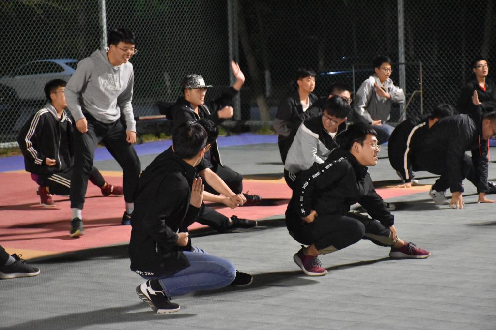 此次三路长拳队伍主要由2018级同学组成,由2017级同学担任教练。曲德馨同学和刘明鑫同学作为长拳教练向参加本届运动会长拳比赛的队员们详细地讲述了三路长拳的动作要领,并亲自示范。教练们对学生的手型、掌型、步型等每个细节严加指导,力求保证每个同学都能标准、娴熟地完成整套长拳动作。虽然晚上天气较冷,但同学们依然精神饱满地进行训练,没有丝毫的懈怠,在教练的不断纠正中,努力将每一式做到最好。“齐心协力、争创佳绩、仪电三军、所向披靡”是仪电长拳组的口号,也是同学们精神力量的体现。在这北国春城的夜色里,在美丽的吉林大学的操场上,同学们有力的动作,响亮的口号,无不体现出仪电学子们昂扬的斗志和意气风发的精神风貌。
