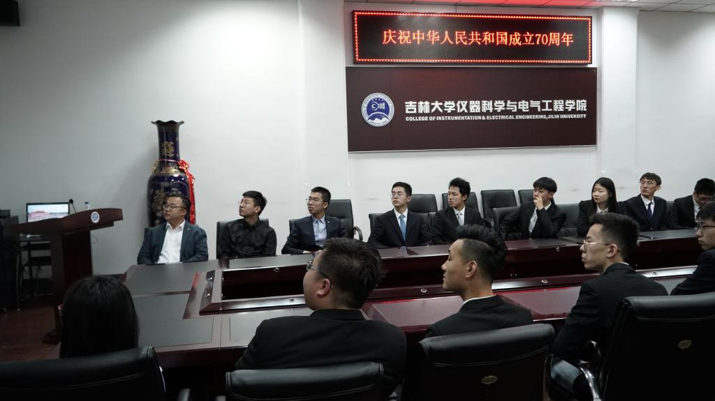 随后,学院本科生党支部成员集体在地质宫330观看庆祝中华人民共和国成立70周年阅兵式直播,2016级、2017级辅导员张昊宇老师,2019级辅导员马姗姗老师出席活动。全体师生聚精会神,认真收看,两个多小时的阅兵结束时,大家意犹未尽,纷纷畅谈体会,现场气氛十分热烈。陈亦楠同学在讨论中结合自己的学习工作经历,引用习近平总书记提到的“青年兴则国家兴,青年强则国家强”,呼吁大家努力奋斗、顽强拼搏,争做优秀的仪电学子,为实现中国梦砥砺前行。