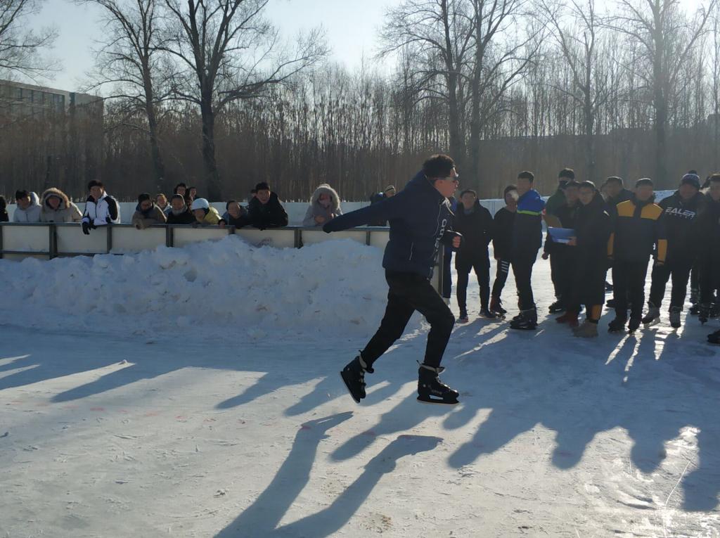 本次比赛项目包含300米、500米的个人比赛以及1000米的接力比赛。比赛之前,运动员们提前来到场地进行热身运动,为比赛做好充足的准备,以最饱满的热情迎接比赛。比赛很快开始,首先进行个人比赛,选手们注意力高度集中,奋勇争先,在观众的声声呐喊中向终点奔去。他们在冰上的飒爽英姿为白雪皑皑的冬天增添了一分活力。最终在个人比赛阶段,仪电学院的肖淞文同学在男子500米项目中以优异成绩摘得银牌。随后进行的接力赛则充分展现了参赛选手的团结与默契,仪电学院两支速滑队在接力赛中拼尽全力,奋发向上。最终,肖淞文同学率领的队伍夺得冠军,创造了仪电学院在这一项目中的历史。