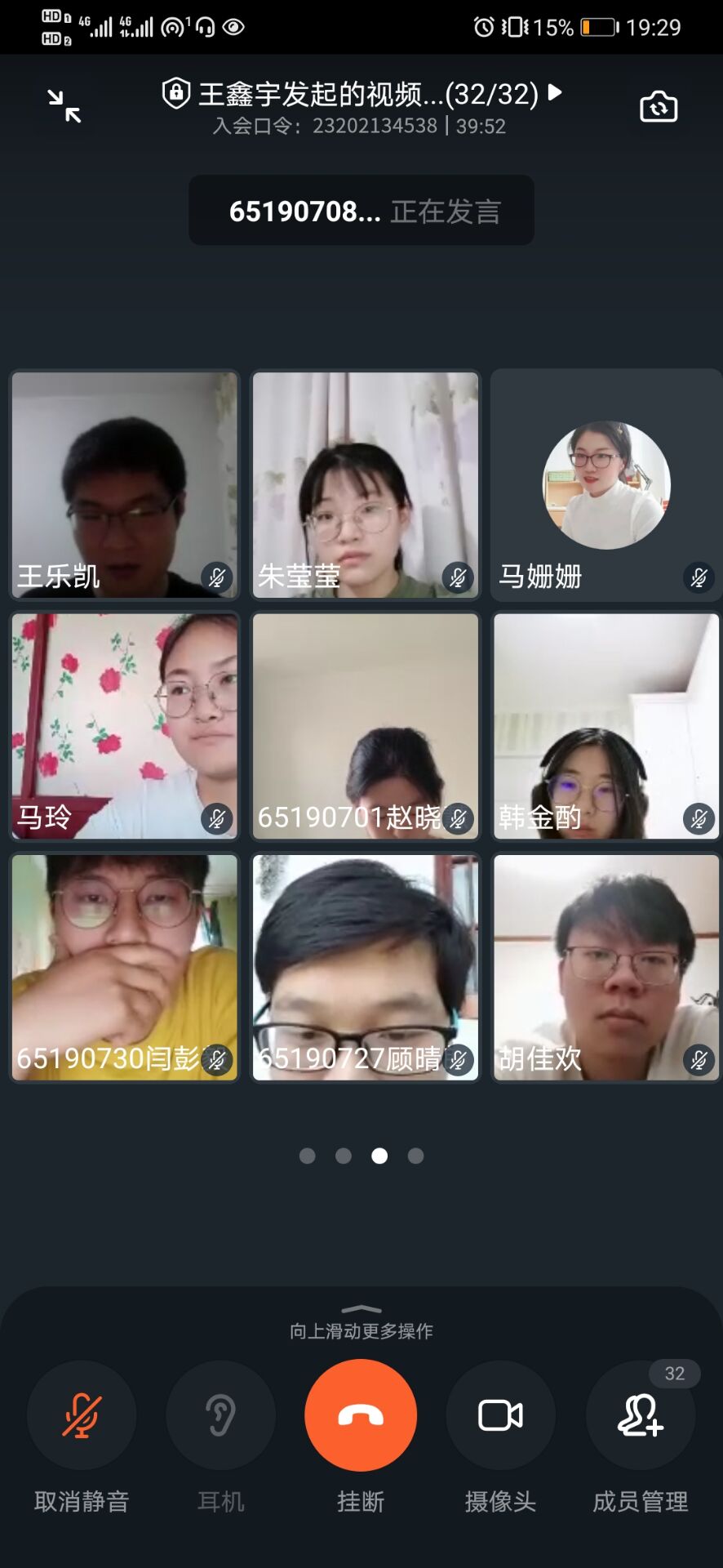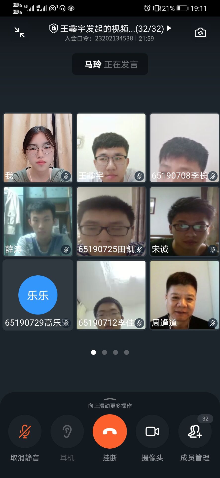 651907班在钉钉会议召开线上班会,651907班班导师周逢道老师和2019级辅导员马姗姗老师出席本次班会。
