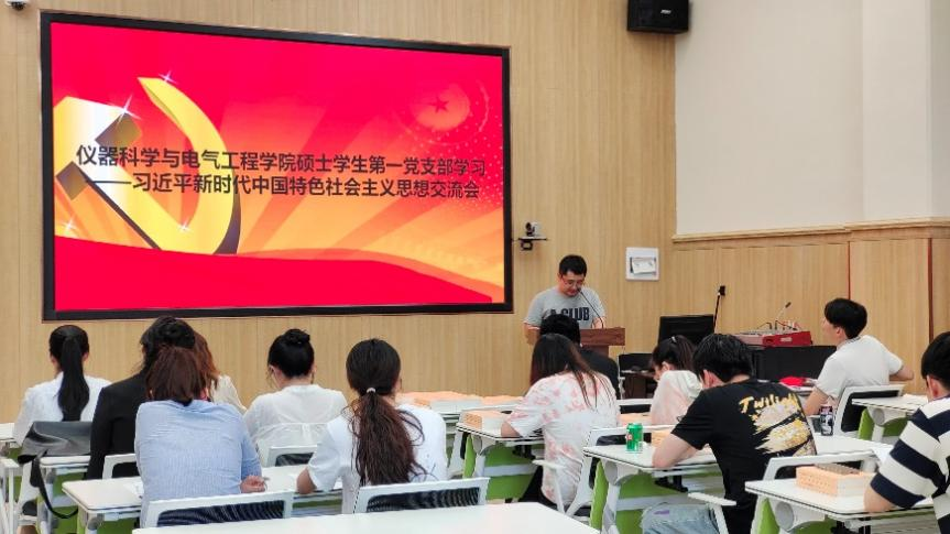 硕士学生第一党支部在地质宫208多功能厅召开习近平新时代中国特色社会主义思想交流会,全体党员参加了会议,会议由党支部书记刘颜达同志主持。