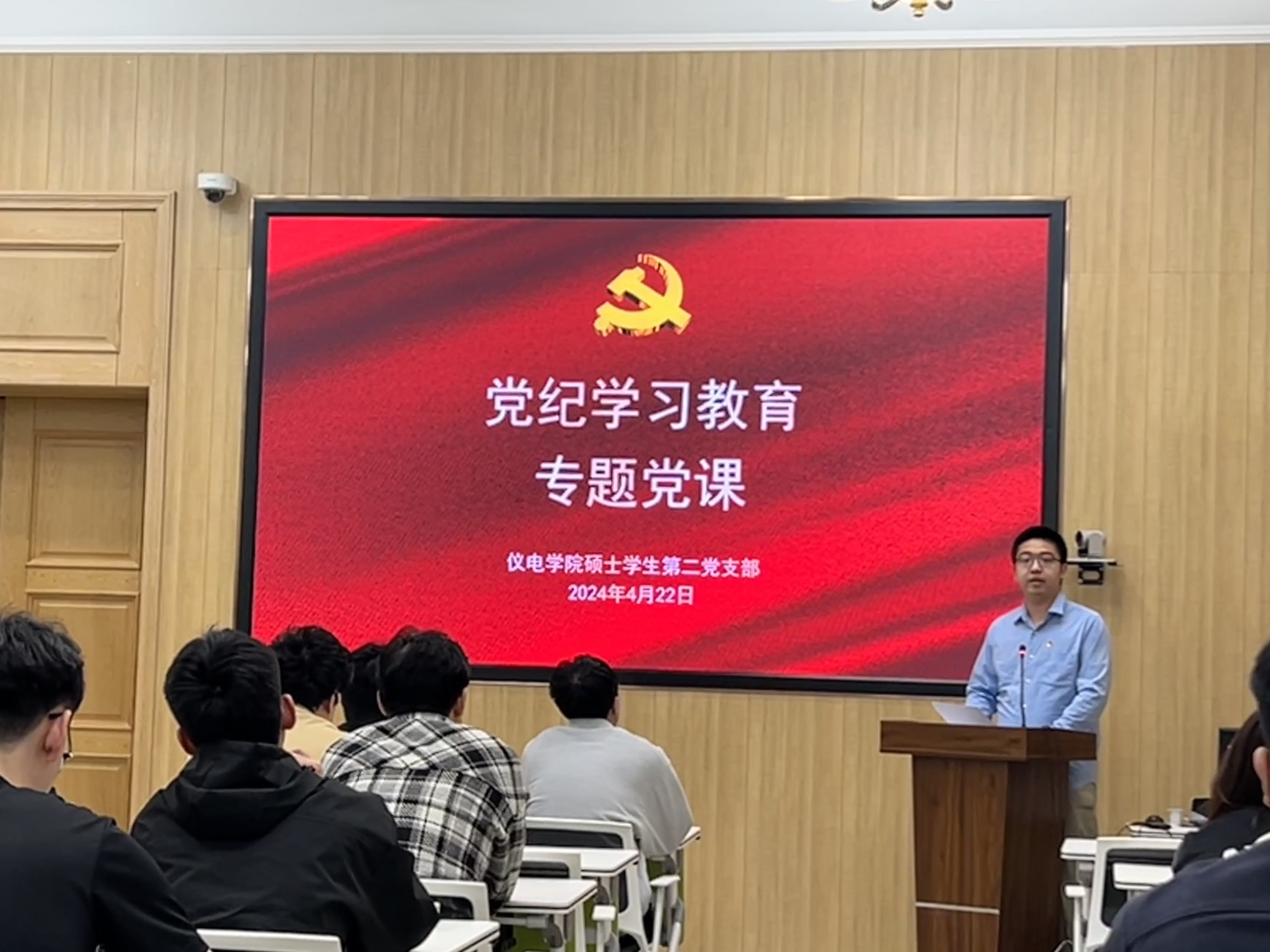为深入学习贯彻习近平总书记关于党纪学习教育的指示批示精神,深入学习贯彻《中国共产党纪律处分条例》,按照学校、学院党委部署安排,仪电学院硕士学生第二党支部于4月22日晚上在朝阳校区地质宫208会议室召开了党纪学习教育启动部署会议,对本支部的党纪学习工作进行启动部署。党支部全体党员、积极分子参加会议,会议由党支部书记周琪老师主持。