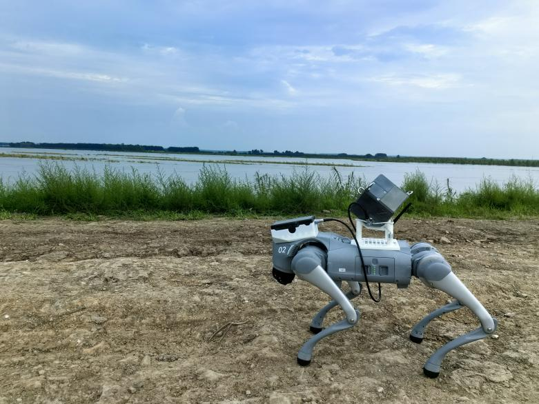 图6 “机器狗”搭载堤坝管涌探测仪进行探测